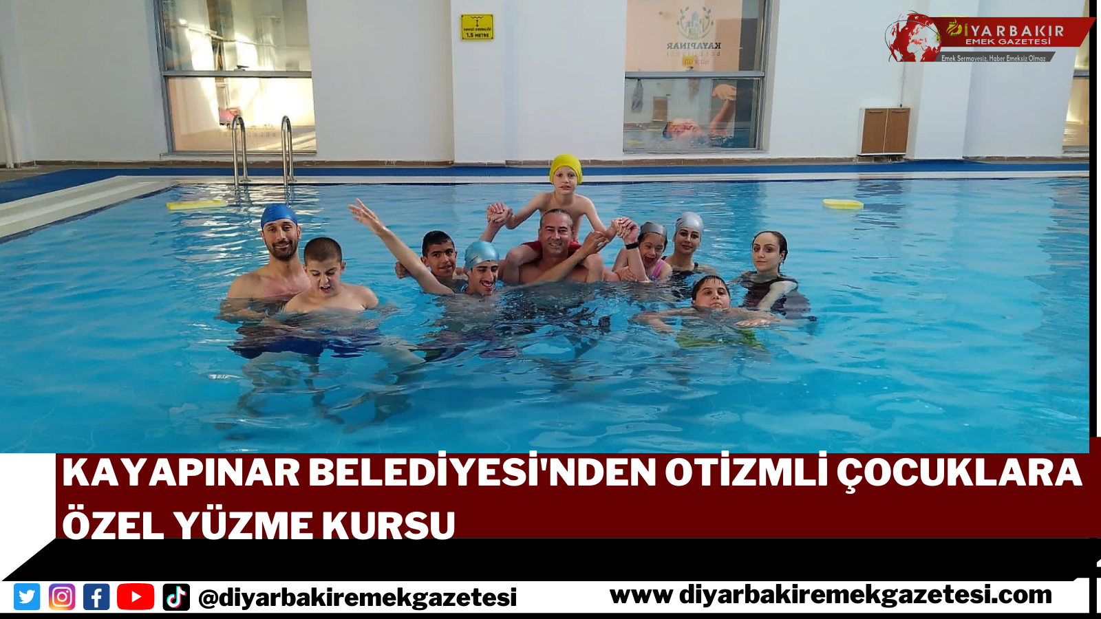 Kayapınar Belediyesi toplumsal farkındalık ve beraberinde duyarlılık oluşturmak amacıyla “Otizmli çocuklarımız, engelleri aşarak mutluluğa kulaç atıyor” sloganı ile Otizmli çocuklara yönelik yüzme kursları başlatıldı.