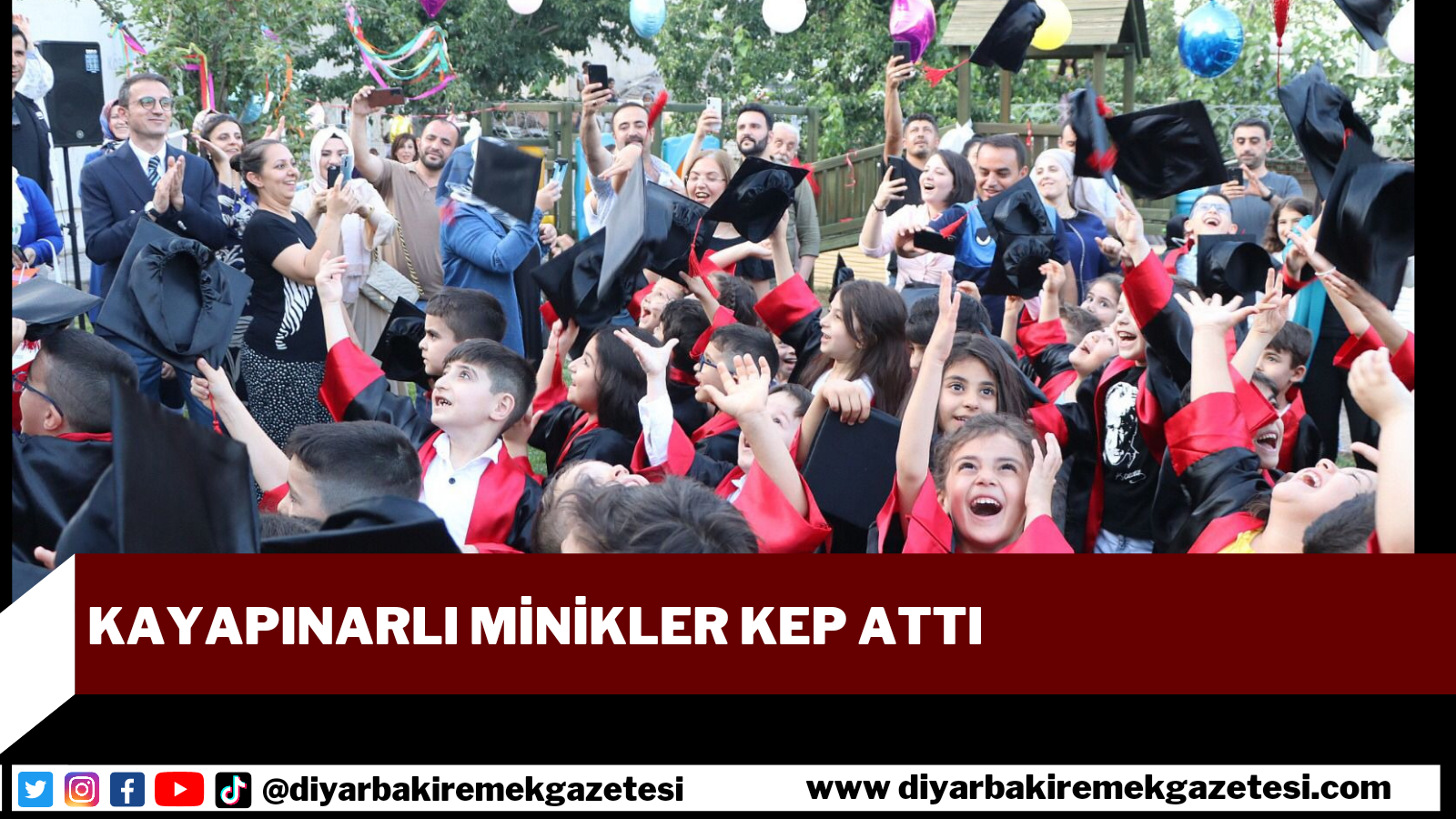 Kayapınar Belediyesi’ne bağlı Zarokistan Kreş ve Gündüz Bakımevi’nin 2021-2022 Eğitim ve öğretim sezonunun sona ermesi nedeniyle mezuniyet töreni düzenlendi. Kayapınar Kaymakamı ve Kayapınar Belediye Başkan V. Arif Karaman’dan mezuniyet belgelerini alan 55 mezun minik öğrenci keplerini atıp mezuniyet heyecanını yaşadı.