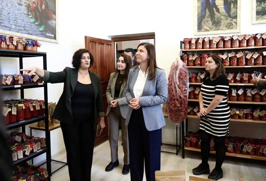 Bunlarla ilgili çalışmalar yaptık. Gerek tescili, coğrafi işaretli ürünler ile ilgili bayağı çalışmalar yapıldı. En son, eğitimler yaptık, bu çalışmalar yaptık. Bu binayı nasıl sürdürebiliriz? Nasıl ayakta kalabilir? Diye kafa yorduk. Biraz ona kafa yormaya başladık ve Key Ma Kadın Kooperatifi buradan doğdu. Ama kadınların bu emekleri çok görünür değil ve uygun bir şekilde, adil bir şekilde ücretlendirilmiyor. Biz de o yüzden böyle işlek bir noktada, tarihi bir yapıda, Diyarbakır'da olmayan ama ihtiyaç duyulan bir alanda bir kadın kooperatifiyle yola çıkalım diye düşündük. Ve hem kadınların bu emeklerini görünür olabileceği hem de kentin gastronomisine, kültürel miras değerlerine katkı sunabilecek bir adım attık. Ve Mart 2024'te Key Ma Kadın Kooperatifi'ni kurduk. İlkin 7 tane kadın bir araya geldik. 5 tane kadın kooperatifimiz vardı bu yapının içerisinde. Kadın kooperatifimizin temsilcileri de bugün aramızda. Onlara da çok teşekkür ediyoruz. Bizlerle beraber yol aldıkları için. 7 kadından bugün 100 kadına çıktı. Emeği geçen herkese, DTSO’ya belediyelerimize, sivil toplum örgütlerine çok teşekkür ediyoruz.’’