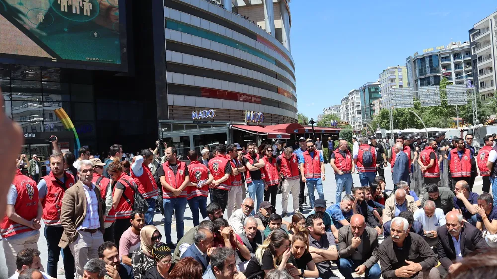 Diyarbakır'da Kobani Davası'nda Kürt siyasetçilere verilen ağır cezaları protesto etmek için Ceylan AVM önünde toplanıldı.