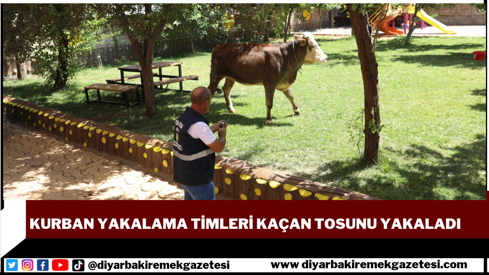Bağlar ilçesinde bulunan Kurban Satış ve Kesim yerinden kesime götürüldüğü sırada sahibinin elinden kaçan yaklaşık 5 yüz kilogram ağırlığındaki tosun, sahibini 10 kilometre peşinden koşturduktan sonra bir sitenin bahçesine girdi.