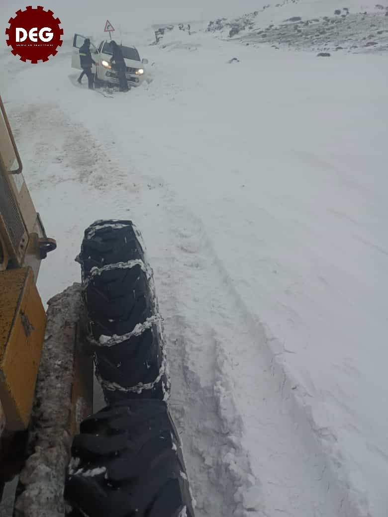 Diyarbakır’da yaşamı olumsuz etkileyen son 50 yılın en etkili kar yağışı, en çok yüksek yerler ve kırsal kesimde etkisini gösteriyor. Bölgenin en yüksek dağı olan Karacadağ’da kar temizleme ve yol açma çalışmalarını sürdüren Bağlar Belediyesi ekipleri, yolda mahsur kalan vatandaşların da yardımına yetişerek olası kaza ve olumsuzlukların önüne geçiyor. Eski adıyla Alatosun yeni adıyla Karacadağ Mahallesi’nde kapanan yolları açmaya çalışan ekipler, Alatosun-Kırkkoyun ve Alatosun –Yalankoz mahalleleri arasındaki bölgede kar yağışı ve tipi nedeniyle görüş açısı kaybolduğun için kara saplanan araçları kar makineleriyle kurtardı. Araçlarda bulunan vatandaşlar da her hangi bir olumsuzluk yaşanmadan kurtarıldı