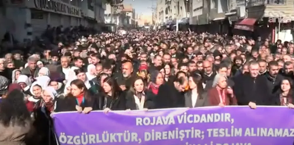 EMEK HABER - Kuzey ve Doğu Suriye’ye yönelik saldırılara karşı Mardin’in Nusaybin ilçesinde on binlerce kişi Kamışlo sınırına doğru yürüyüş gerçekleştirdi.