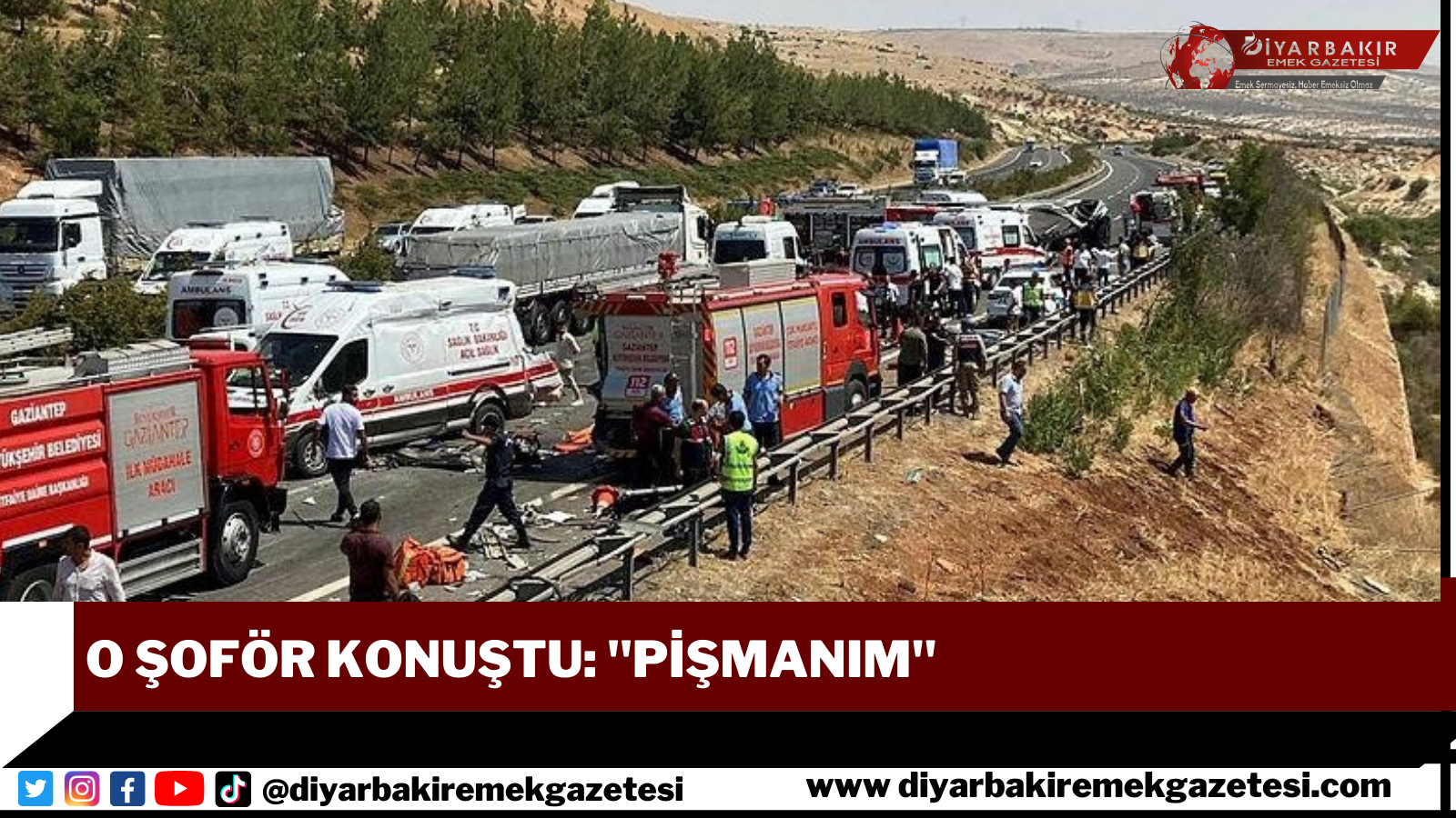 Gaziantep'te 16 kişinin öldüğü kazada yaralı olarak kurulan ve tedavisinden sonra gözaltına alınan otobüs şoförü Abdulkadir Memiş'in ilk ifadesi ortaya çıktı. Memiş'in, "Otoyolda kaza vardı, kalabalık bir ekip bulunuyordu. O sırada ne olduğunu anlayamadım. Bir anda otobüsün direksiyon hakimiyetini kaybettim. Toparlamak için manevra yapmaya başladım ama kurtaramadım ve otobüs devrildi. Pişmanım" dediği öğrenildi.