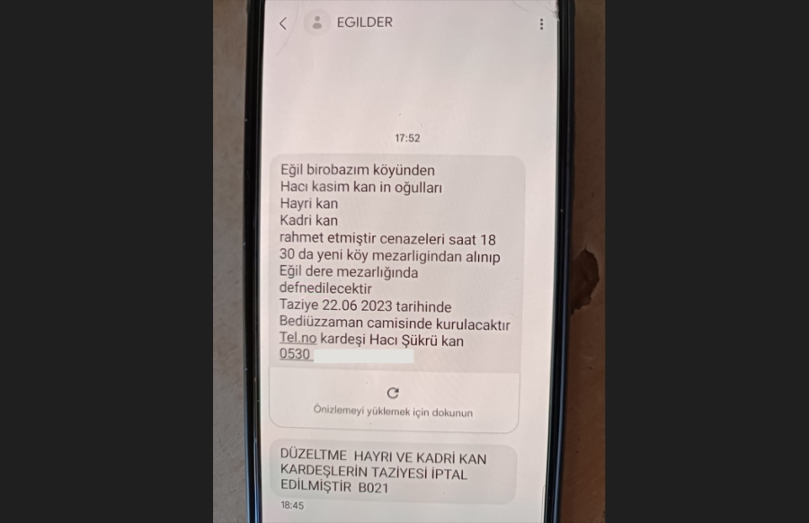 Olayın ardından Diyarbakır Valiliği’de bir açıklama yayınladı. Öte yandan, Diyarbakır’ın Eğil İlçesi nüfusuna kayıtlı olan kardeşler için Eğilliler Derneği whatsapp gruplarından “Eğil Birobazım Köyünden hacı Kasım Kan’ın oğulları Hayri Kan, Kadri Kan rahmet etmiştir. Cenazeleri saat 18:30’da Yeniköy Mezarlığı’ndan alınıp Eğil Dere Mezarlığı’nda defnedilecektir. Taziye 22.06.2023 tarihinde Bediüzzaman Camisi’nde kurulacaktır. Tel. No kardeşi Hacı Şükrü Kan 0530 … .. ..” mesajını yayınladı. Mesajın yayınlanmasından kısa bir süre “Hayri ve Kadri Kan kardeşlerin taziyesi iptal edilmiştir” diye düzeltme mesajı geldi.