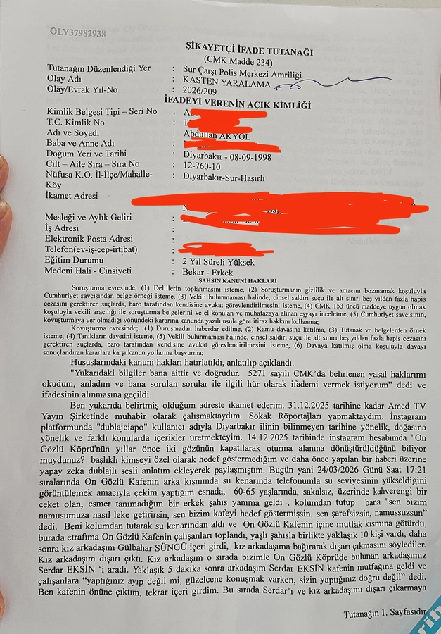 EMEK HABER - Diyarbakır’da görev yapan gazeteci Abdullah Akyol, haber takibi sırasında fiziki ve sözlü saldırıya uğradı. Olay, On Gözlü Köprü çevresinde meydana geldi.