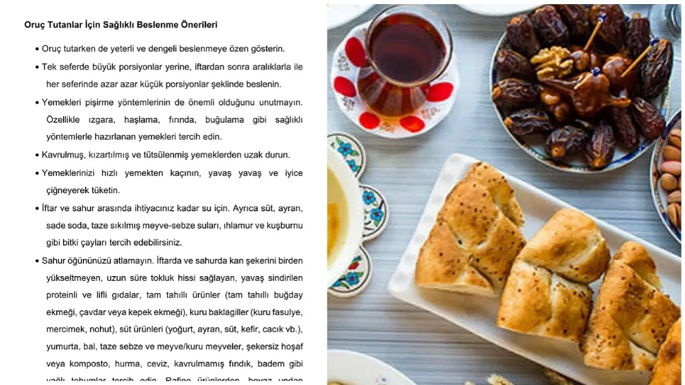 Sağlık Bakanlığı, Ramazan ayında sağlıklı beslenmek için şu önerilerde bulunuyor: