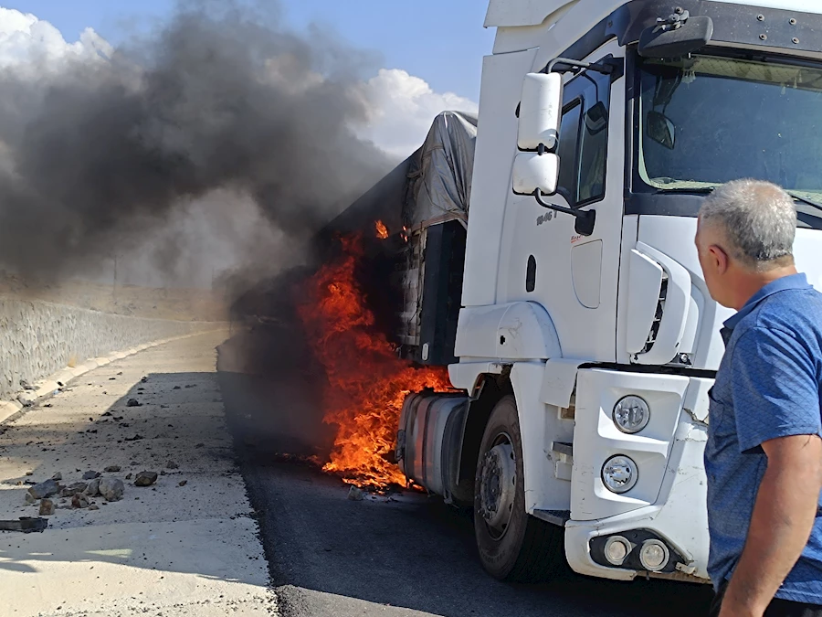 EMEK HABER- -Olay, bugün 15:30 sularında Siverek feribot yolu üzerinde gerçekleşti. Diyarbakır'dan yola çıkan seyir halindeki tuğla yüklü kamyon bir anda yanmaya başladı. Kamyon şoförü, alevleri fark etmesi üzerine aracı durdurarak kendini dışarı attı.