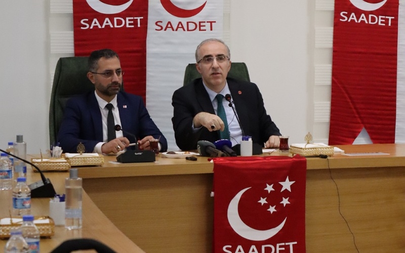 Saadet Partisi Genel Başkan Yardımcısı Mustafa Kaya, Diyarbakır Ticaret ve Sanayi Odası (DTSO) Toplantı Salonu'nda basın toplantısı düzenledi.