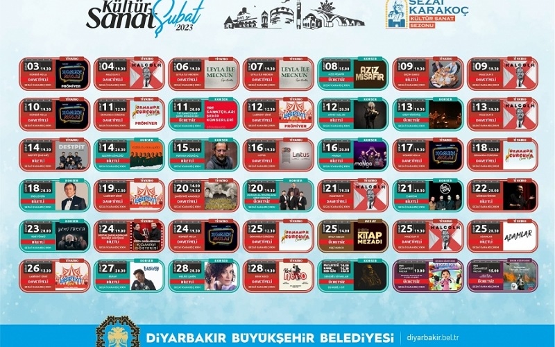 Diyarbakır Büyükşehir Belediyesi, Sezai Karakoç Kültür ve Sanat Sezonu Şubat ayı takvimini belirledi.