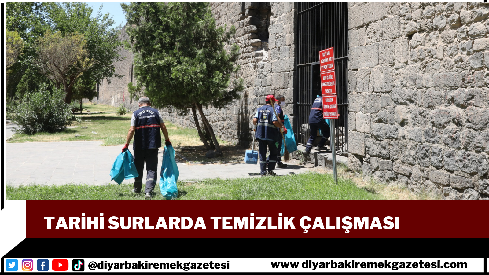 Çevre Koruma ve Kontrol Daire Başkanlığı, dünya mirası Surlarda Diyarbakırlıların, yerli ve yabancı turistlerin rahat ve hijyenik bir ortamda gezebilmesi için vatandaşların gerekli hassasiyeti göstererek atıkların gelişigüzel atılmaması konusunda uyardı.