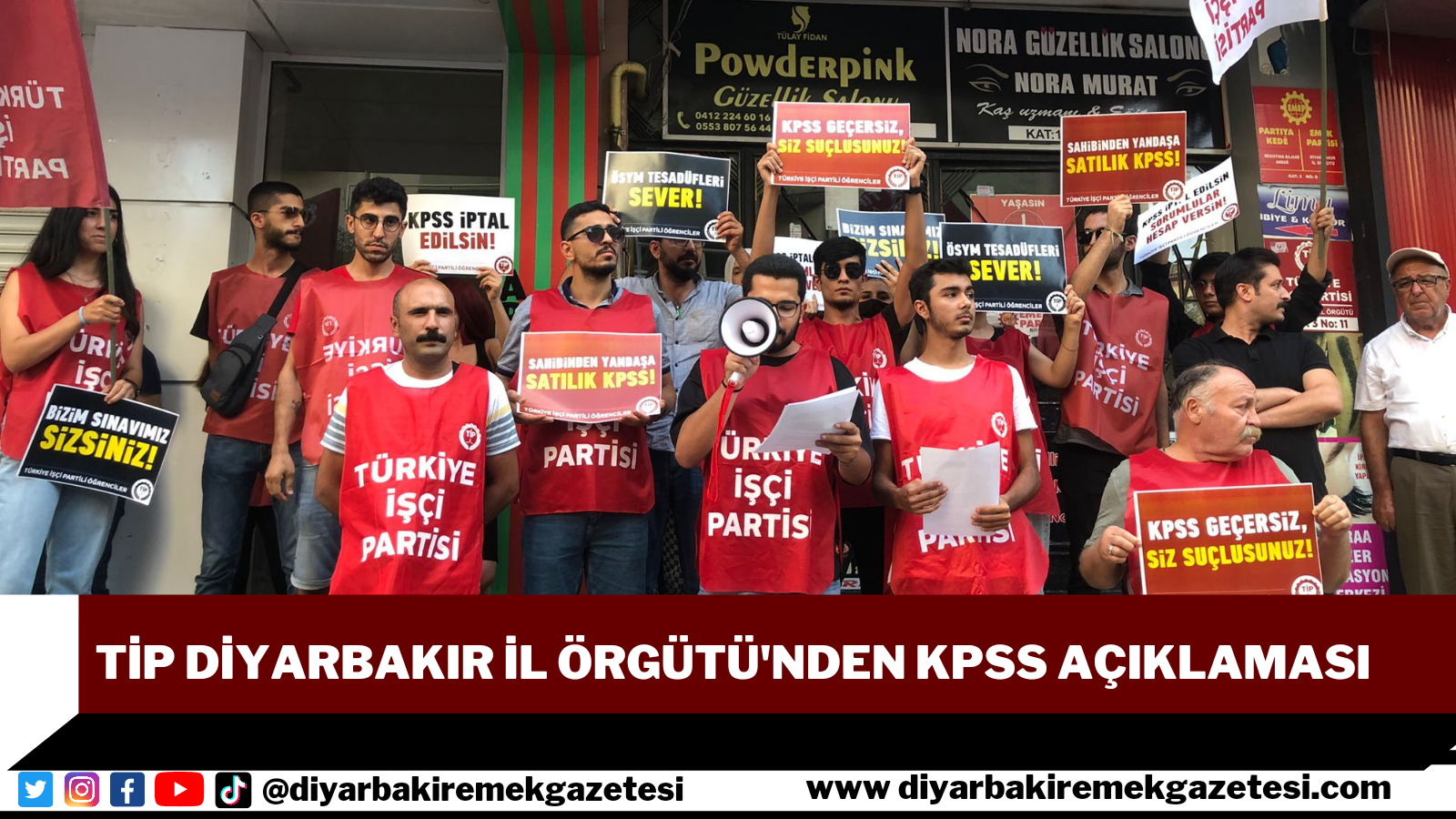 Kamu Personeli Seçme Sınavı'nda (KPSS) bir yayınevinin kitabında yer alan bazı soruların, aynen yer aldığının ortaya çıkması skandalına ilişkin Türkiye İşçi Partili (TİP’li) Öğrenciler, ¨KPSS iptal edilsin, sorumlular hesap versin¨ diyerek, 9 ilde basın açıklaması düzenledi.