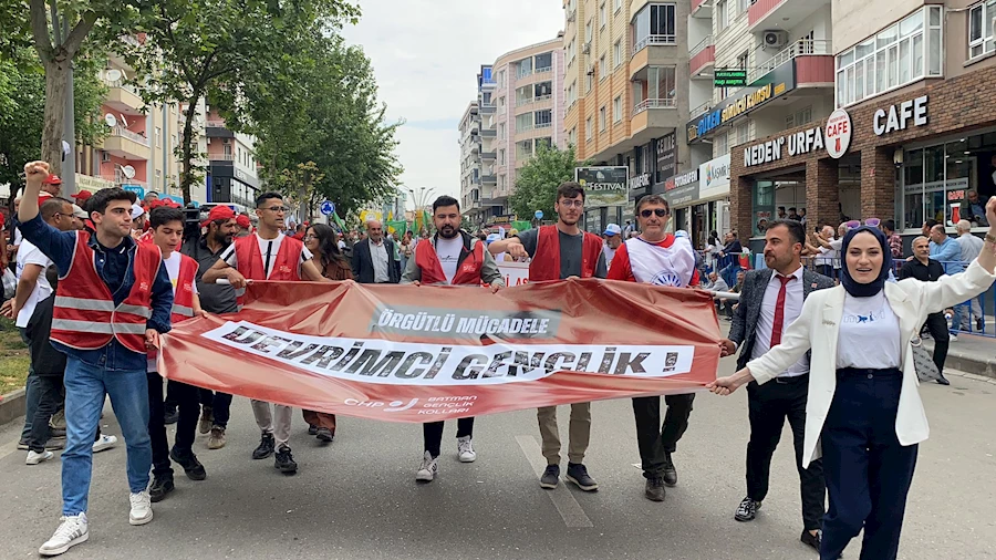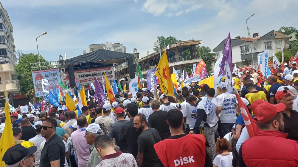 Batman Emek ve Demokrasi Platformu'nun öncülüğünde gerçekleştirilen 1 Mayıs Bölge Mitingi için binlerce işçi ve sendika üyesi 8 Mart Kadın Parkı'na etti. Mitinge, bölge illerindeki bir çok işçi sendikası da katıldı.