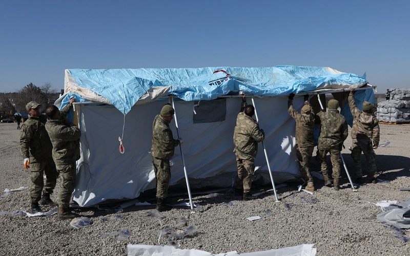AFAD koordinasyonunda yapılan yeni barınma merkezinde çadır kurma çalışmaları başladı.