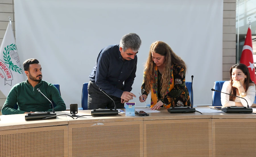 Uluslararası Çalışma Örgütü’nün (ILO) 190 sayılı "Çalışma Yaşamında Şiddet ve Tacizi Önlemeye Yönelik Politika Belgesi” doğrultusunda hazırlanan belgenin imza törenine Yenişehir Belediyesi Eş Başkanları Safiye Akdağ ve Mehmet Ergün’ün yanı sıra belediye meclis üyeleri ve kadın çalışanlar katıldı.