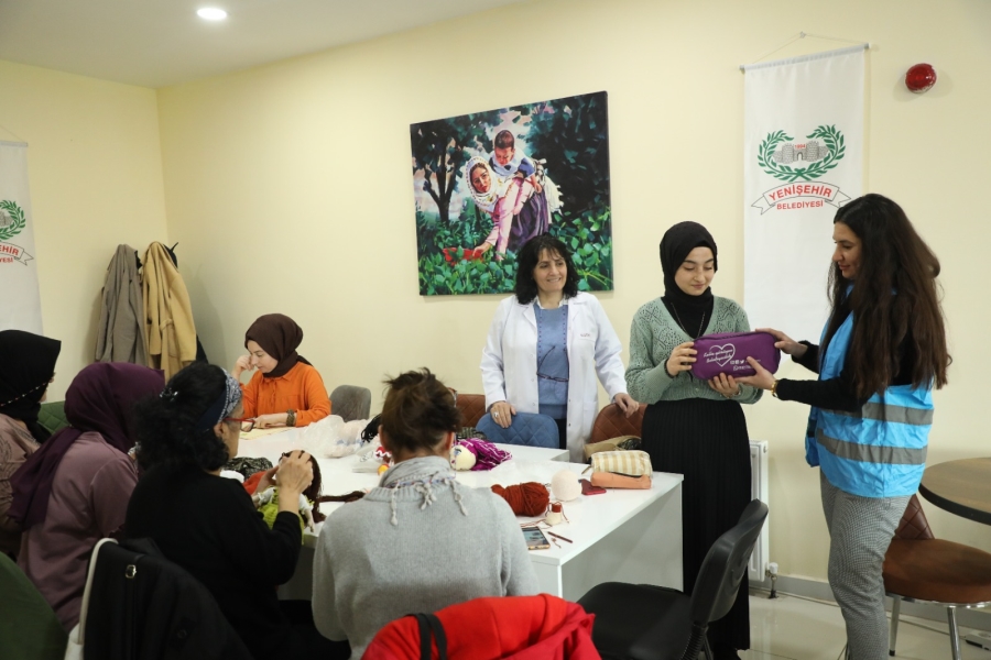 Yenişehir Kaymakamı ve Belediye Başkan Vekili Murat Beşikci'nin talimatları ile Yenişehir Belediyesi Kadın ve Aile Hizmetleri Müdürlüğü personelleri, Belediyeye bağlı Aziziye Mahallesi Ahi Evran Hanım Evi Millet Kıraathanesi'ndeki kadın kursiyerlere, Engelsiz Yaşam Merkezinde eğitim alan özel gereksinimli bireylere ve Üçkuyu Mahallesinde bulunan Hamidiye Medresesi Kur’an Kursu kız öğrencilerine hijyen kitlerini ulaştırdı.