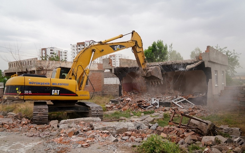 Diyarbakır Büyükşehir Belediyesi, Yenişehir ilçesi Dokuzçeltik mahallesinde imar planına göre yolda kalan iki yapının yıkımını gerçekleştirdi.